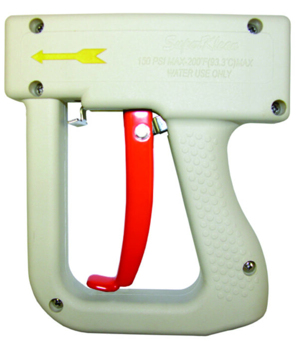 SuperKlean’s new DuraFlow spray nozzle was specifically designed to prevent accidental spray. Its unique cover design is not only durable, but also prevents the front mounted levers, which reduce hand fatigue and offer smooth lever action, from being accidentally activated when the nozzle is dropped. The new DuraFlow spray nozzles also come with a trigger locking mechanism for a safe and secure method of maintaining the nozzle open at any spray pattern. Variable spray patterns, adjustable from fan spray to solid stream, is one of the many features offered by the new SuperKlean DuraFlow spray nozzle. Water conservation is assured upon release of lever by the drip-free automatic shutoff feature. SuperKlean DuraFlow spray nozzles are available in 300 series stainless steel and weigh a total of 1.53 Lbs.